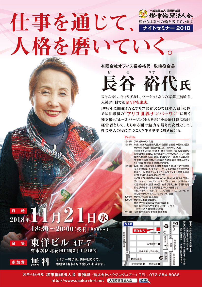 11月21日に堺市倫理法人会によるナイトセミナーが東洋ビルにて開催されます。