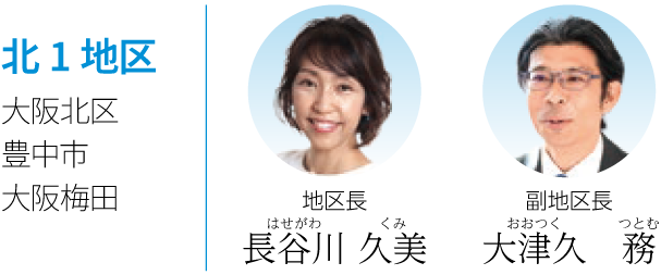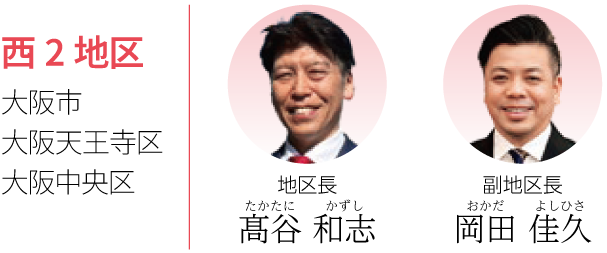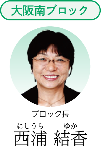 今期大阪南ブロック長を仰せつかりました、株式会社南海グリル代表取締役西浦結香です。大阪南の7つの単会を3人の地区長並びに副地区長が単会の応援団としてサポートをさせていただきます。法人会での学びのひとつでもあります組織運営を全力で学び応援したいと考えます。目標達成は会員さんへのプレゼント!会が成長し一人ひとりが成長するにはもってこいです!みんなを巻き込み明るく仲良くその会らしく実践していきたいと存じます。倫理は生涯教育、倫理を学んで良かったと言ってもらえるよう顔晴ります。よろしくお願いします。