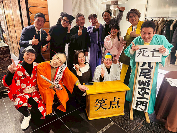 この班を率いたのが、入会2年目の石津寿朗さん。人懐っこい笑顔と誠実な人柄で、会員から愛され慕われる人気者なのです。準備は約3カ月前からスタートし、余興の目玉には「笑点」大喜利風コントを採用。脚本・演出を担った女性会員を中心に、リアルとZoomを交え深夜稽古まで行われました。