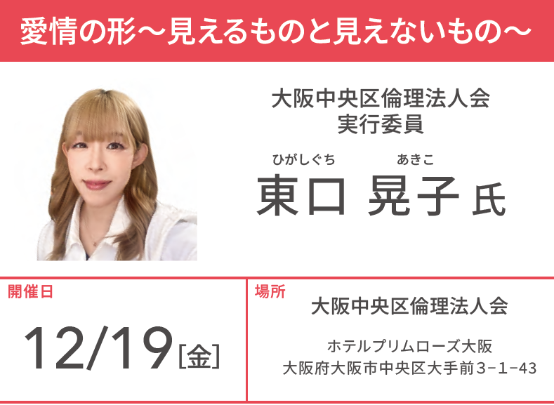 ステップファミリーとしての実体験から、愛情は自然に伝わるものではなく、言葉や行動を重ねて初めて“見える愛情”となり心に届くことを実感された東口さん。家庭を大切にすることは仕事を疎かにすることではなく、むしろ人を支える力になる――。その気づきは、倫理法人会での学びや実践を通じてさらに深まったといいます。心が疲れた時ほど必要な愛情表現の大切さを、具体的なエピソードを交えて優しく伝えてくださいます。「皆さまの愛情は、どなたを笑顔にしていますか?」その問いかけが、きっと日常を見つめ直す小さなきっかけになるでしょう。
