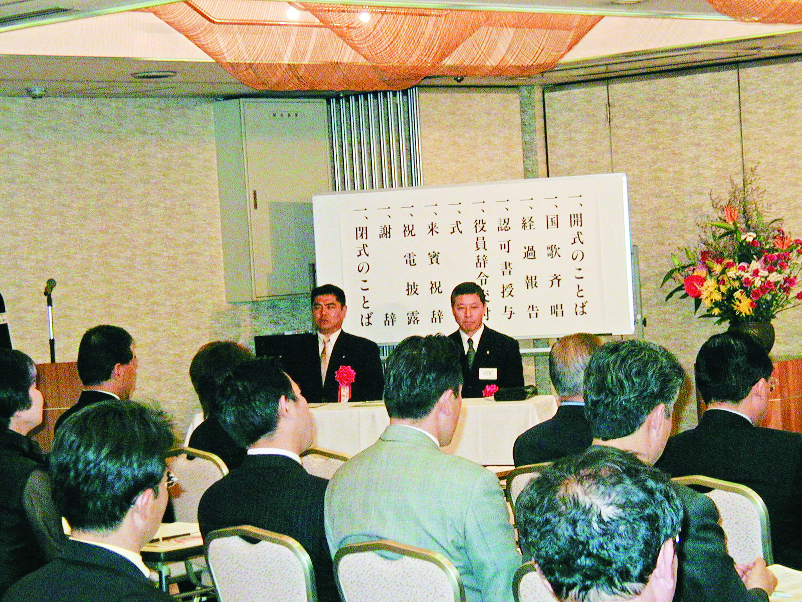 日本一の法人会にするという初代会長の上能会長の断言のもと、新原隆一教育業務部部長、鈴江章近畿方面方面長、その他の法人会の会長や会員の方々200名の出席をいただき、ホテルくれべ梅田において設立記念式典が開催されました。
